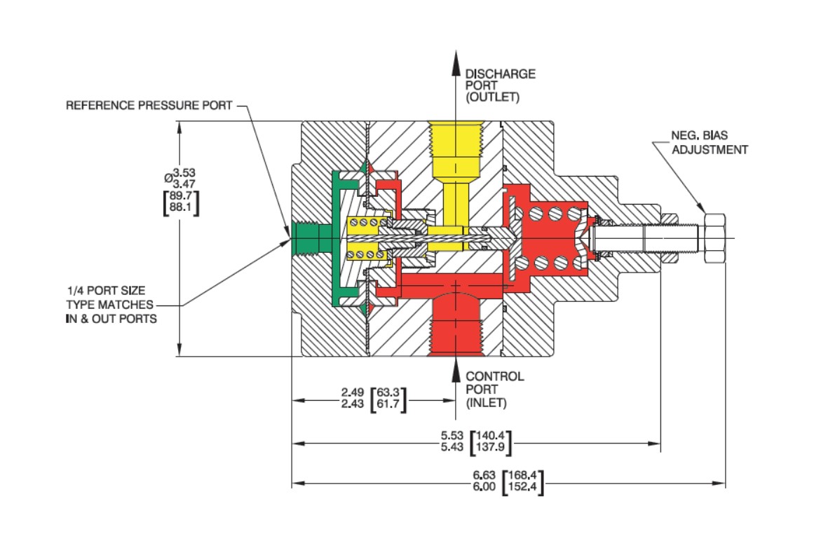 26-2900 Series is a dome loaded, negative bias, backpressure tracking regulator with a balanced main valve. This regulator controls upstream pressures up to 1000 psig / 69.0 bar with spring bias setting. Ideal for use in offshore diving applications, dumping exhaled breath from pressure chamber (BIBS) and diving bell.